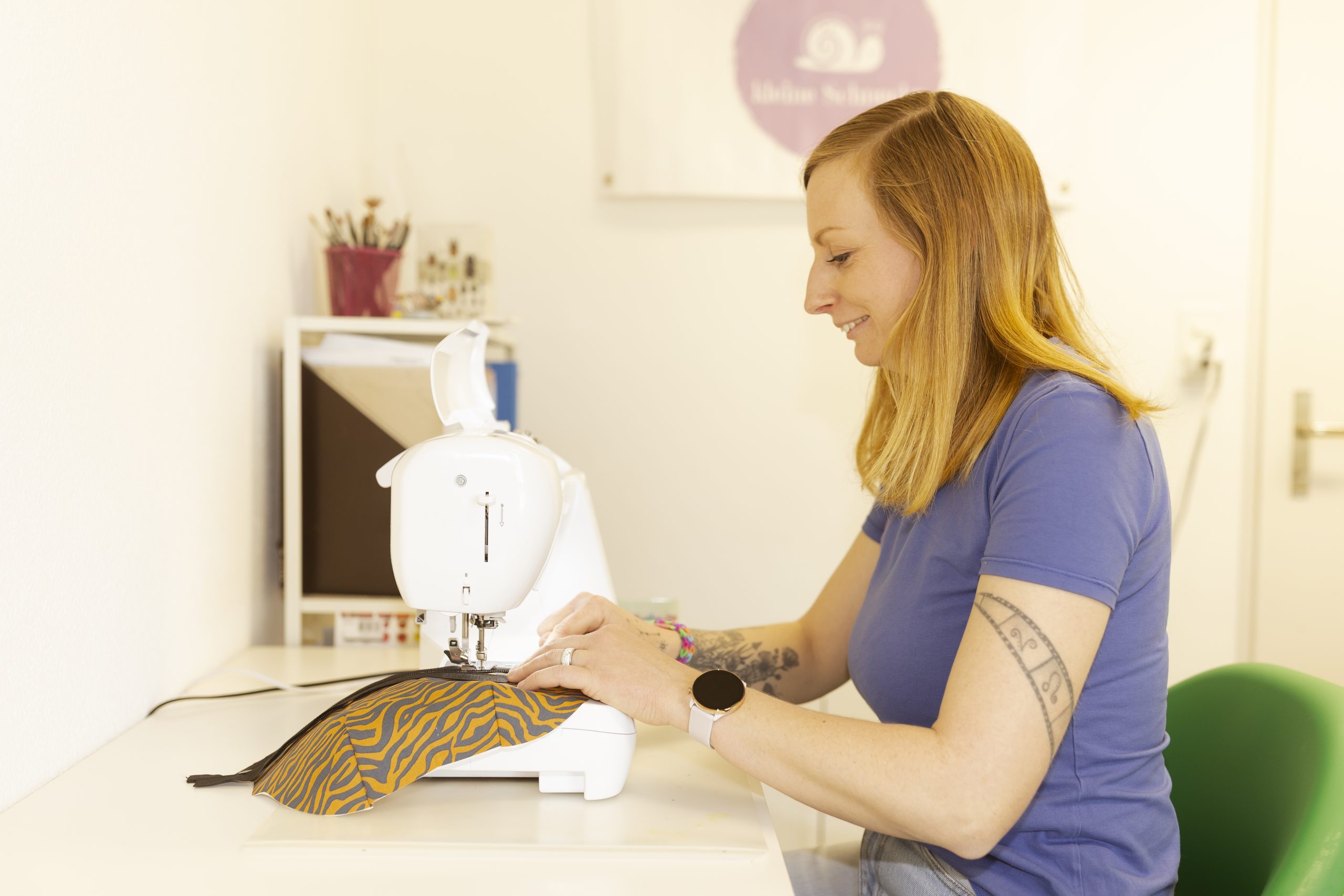 Kleine Schnecke ist der Name des Nähateliers von Christine Stucki. Christine näht in ihrem Atelier Kinderkleider und Accessoires wie Taschen und Portemonnaies, die sie von Hand mit tollen Tiermotiven bemalt.